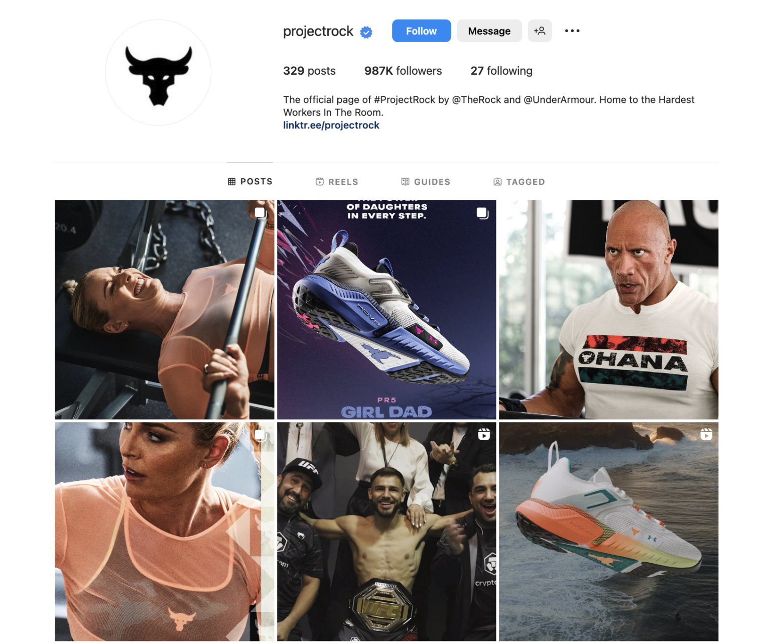 作为网红营销的一个分支,品牌大使计划是品牌接触特定受众的绝佳方式,通过与目标客户产生共鸣或产生共鸣的人合作,可以实现这一目标。例如,时尚品牌 Aerie选择招募受众较少、与品牌使命高度契合的大使,而 Under Armour 则选择与一位大牌明星合作,与 The Rock 合作开展长期品牌大使计划。